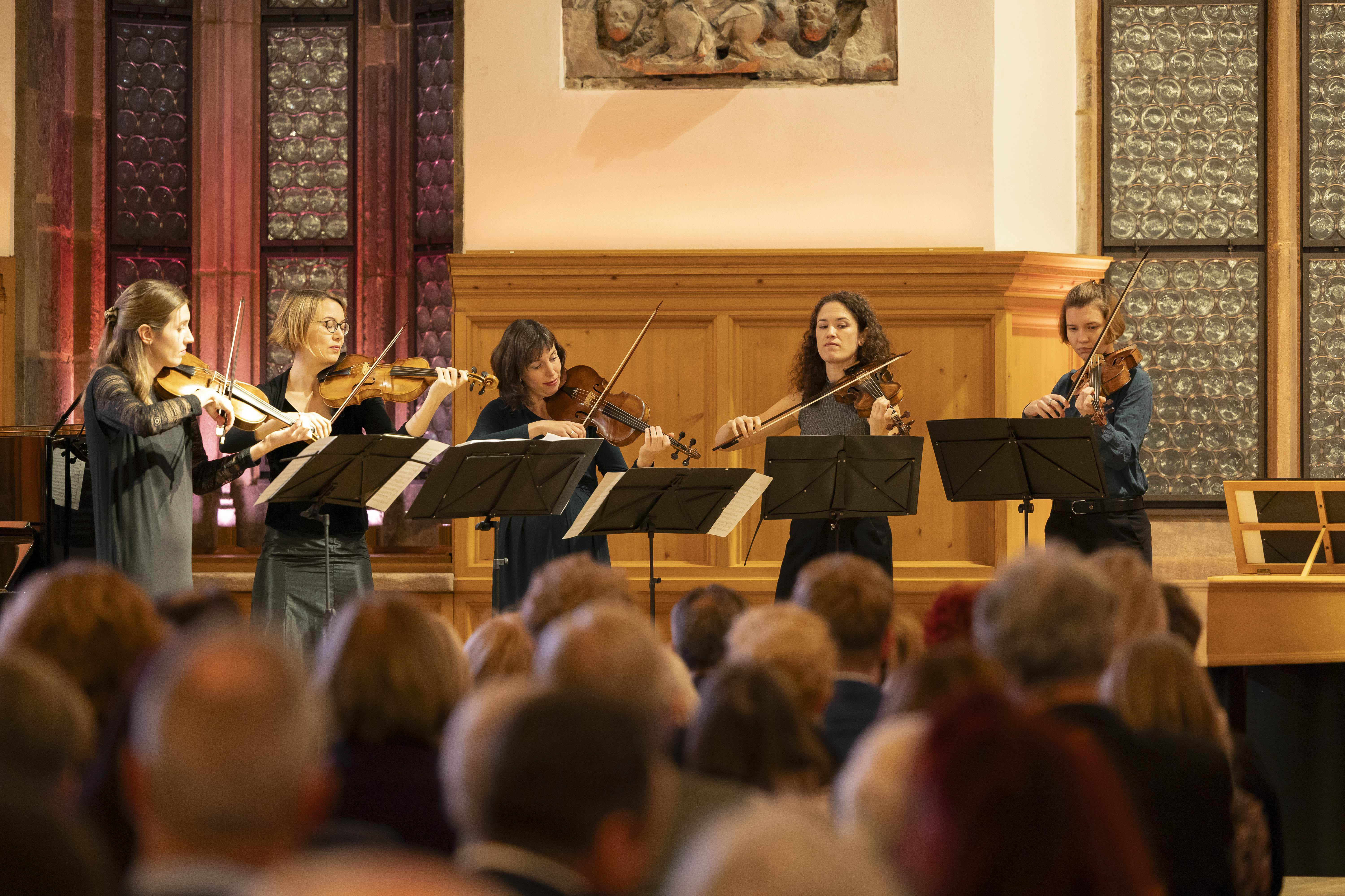 Im Abschlusskonzert präsentieren die Workshop-Teilnehmer:innen ihre im Unterricht erarbeiteten Kammermusikwerke und spielen gemeinsam mit den Dozent:innen im Barockorchester. Das Musizieren ohne Dirigent und gemeinsam mit den Profis ist für die jungen Musiker:innen eine besondere Erfahrung.